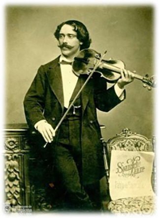 “Al poco tiempo vino a dar dos conciertos el gran violinista español Pablo Sarasate. Este iba siempre acompañado de una hermana suya. Llegaba muy temprano al teatro y hasta la hora del concierto no cesaba de ejecutar los pasajes más comprometidos del programa. Llegada la hora del concierto, cogía la hermana el Stradivarius y al llegar a la primera caja de bastidores, le entregaba el instrumento, se daban un beso, se santiguaba y salía a escena para entusiasmar al público”.